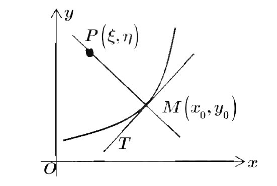 如图,设曲线 $L$ 的方程为 $y=f(x)$ ,且 $f^{\prime \prime}(x)>0$ ,又 $M T 、 M P$ 分别为该曲线在点 $M\left(x_0, y_0\right)$ 处的切线和法线,已知线段 $M P$ 的长度为 $\frac{\left[1+\left(y_0^{\prime}\right)^2\right]^{\frac{3}{2}}}{y_0^{\prime \prime}}$ (其中, $y_0^{\prime}=y^{\prime}\left(x_0\right)$, $\left.y_0^{\prime \prime}=y^{\prime \prime}\left(x_0\right)\right)$ ,试推导出点 $P(\xi, \eta)$ 的坐标表达式.