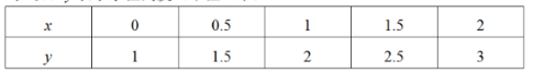一个深为 6 米的水池积存着少量水, 现在打开水阀进水, 下表记录了 2 小时内 5 个时刻的水位高度, 其中 $x$ 表 示进水用时 (单位:小时), $y$ 表示水位高度 (单位: 米).
