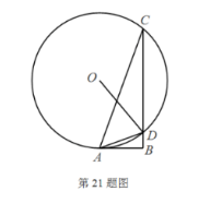 21. 如图, 半径为 6 的 $\odot O$ 与 Rt $\triangle A B C$ 的边 $A B$ 相切于点 $A$, 交边 $B C$ 于点 $C, D, \angle B=90^{\circ}$, 连结 $O D, A D$.