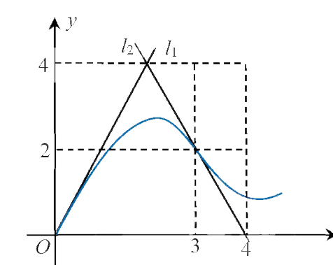 如下图,曲线 $C$ 的方程为 $y=f(x)$ ,点 $(3,2)$ 是它的一个拐点,直线 $l_1$ 与 $l_2$ 分别是曲线 C 在点 $(0,0)$ 与 $(3,2)$ 处的切线,其交点为 $(2,4)$. 设函数 $f(x)$ 具有三阶连续导数,计算定积分 $\int_0^3\left(x^2+x\right) f^{\prime \prime \prime}(x) \mathrm{d} x$.