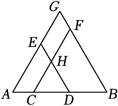 如图, 点 $C, D$ 在线段 $A B$ 上 (点 $C$ 在点 $A, D$ 之间), 分别以 $A D$, $B C$ 为边向同侧作等边三角形 $A D E$ 与等边三角形 $C B F$, 边长分别为 $a, b, C F$ 与 $D E$ 交于点 $H$, 延长 $A E, B F$ 交于点 $G, A G$ 长为 $c$.