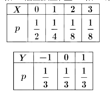设随机变量 $\boldsymbol{X}$ 和 $\boldsymbol{Y}$ 相互独立,且 $\boldsymbol{X}$ 和 $\boldsymbol{Y}$ 概率分布分别为,