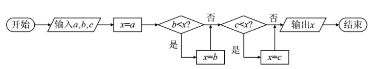已知 $a=\sin \frac{\pi}{4}, b=e^{\ln \frac{1}{2}}, c=\frac{\pi}{6}$ 执行如图所示的程序框图, 输出的值为