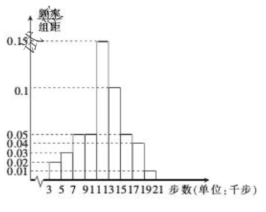[9,11),[11,13),[13,15),[15,17),[17,19),[19,21]$九组 (单位: 千步),将样本数据绘制成频率分布直方图如图并利用该样本的频率分布估计总体的概率分布.