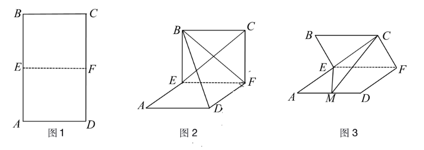 如图 1, 矩形 $A B C D$, 点 $E, F$ 分别是线段 $A B, C D$ 的中点, $A B=4, A D=2$, 将 矩形 $A B C D$ 沿 $E F$ 翻折