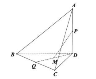 已知三棱锥 $A-B C D, A D \perp$ 底面 $B C D, B C \perp C D, A D=B C=C D=2$,点 $P$ 是 $A D$ 的中点, 点 $Q$ 为线段 $B C$ 上一动点, 点 $M$ 在线段 $D Q$ 上.