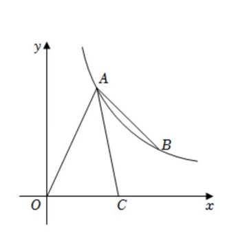 如图, 反比例函数 $y=\frac{\mathrm{k}}{\mathrm{x}}(x>0)$ 的图象经过点 $\mathrm{A}(2,4)$ 和点 $\mathrm{B}$, 点 $\mathrm{B}$ 在点 $\mathrm{A}$ 的下方, $\mathrm{AC}$ 平分 $\angle O A B$, 交 $\mathrm{x}$ 轴于点 $\mathrm{C}$.