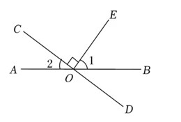 如图, 直线 $\mathrm{AB}, \mathrm{CD}$ 相交于点 $\mathrm{O}, \mathrm{E} O \perp \mathrm{CD}$, 垂足为 $\mathrm{O}$. 若 $\angle \mathbf{1}=\mathbf{5 4}^{\circ}$, 则 $\angle 2$ 的度数为