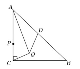 如图, 在 Rt $\triangle \mathbf{A B C}$ 中, $\angle \mathbf{A C B}=90^{\circ}, \mathbf{A C}=\mathbf{B C}=2 \sqrt{2}$, 点 $\mathbf{D}$ 为 $\mathbf{A B}$ 的中点, 点 $P$ 在 $\mathbf{A C}$ 上, 且 $\mathbf{C P}=1$, 将 $\mathrm{CP}$ 绕点 $\mathrm{C}$ 在平面内旋转, 点 $P$ 的对应点为点 $Q$, 连接 $A Q, D Q$. 当 $\angle A D Q=90^{\circ}$ 时, $A Q$ 的 长为
