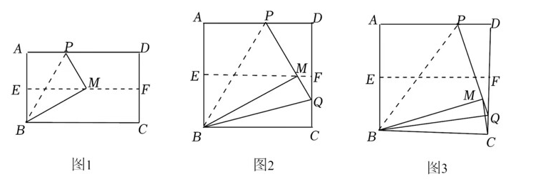 (1)如图 2, 当点 $\mathrm{M}$ 在 $\mathbf{E F}$ 上时, $\angle \mathrm{MBQ}=\quad, \angle \mathrm{CBQ}=$