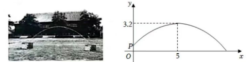 小红看到一处喷水景观, 喷出的水柱呈抛物线形状, 她对此展开研究: 测得喷水头 $P$ 距地面 $0.7 \mathrm{~m}$, 水柱在距喷水头 $P$ 水平距离 $5 \mathrm{~m}$ 处达到最高, 最高点距地面 $3.2 \mathrm{~m}$; 建立如图所示的平面直角坐 标系, 并设抛物线的表达式为 $y=a(x-h)^2+k$, 其中 $x(m)$ 是水柱距喷水头的水平距离, $y(m)$ 是 水柱距地面的高度.