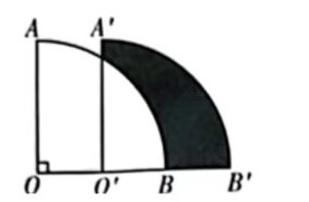 如图, 将扇形 $\mathrm{AOB}$ 沿 $\mathrm{OB}$ 方向平移, 使点 $\mathrm{O}$ 移到 $\mathrm{OB}$ 的中点 $\mathrm{O}^{\prime}$ 处, 得到扇形 $\mathbf{A}^{\prime} \mathrm{O}^{\prime} \mathrm{B}^{\prime}$. 若 $\angle \mathrm{O}=90^{\circ}, \mathrm{OA}=\mathbf{2}$, 则阴影部分的面积为