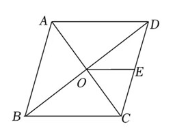 如图, 在菱形 $A B C D$ 中, 对角线 $A C, B D$ 相交于点 $O$, 点 $E$ 为 $C D$ 的中点. 若 $O E=3$, 则菱形 $A B C D$ 的周长为