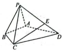 如图, 在四棱锥 $P-A B C D$ 中, 底面四边形 $A B C D$ 满足 $A B=C B=\sqrt{2}, A D=C D=\sqrt{5}$, $\angle A B C=90^{\circ}$, 棱 $P D$ 上的点 $E$ 满足 $P E=2 D E$.