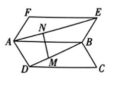 如图所示实验装置,由矩形 $A B C D$ 和 $A B E F$ 构成,且 $A B=4, A D=A F=$ 3.$\angle D A F=\frac{\pi}{3}$ .活动点 $\mathrm{M}, \mathrm{N}$ 分别在对角线 $\mathrm{BD}, \mathrm{AE}$ 上移动,且 $\mathrm{AN}=\mathrm{DM}$ .