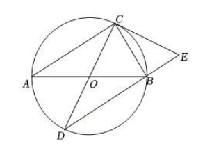 如图,$\triangle A B C$ 内接于 $\odot O, A B, C D$ 是 $\odot O$ 的直径,$E$ 是 $D B$ 延长线上一点,且 $\angle D E C=\angle A B C$ .