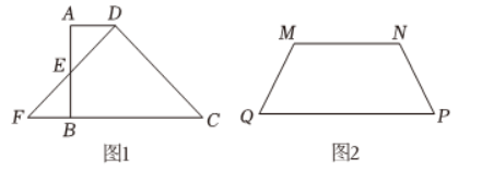 (2)如图2,梯形 $M N P Q, M N \| P Q, M Q=N P$ ,请设计一种方法,用一条直线或两条直线分割梯形为若干部分,再进行一系列的图形运动,拼成一个等腰三角形,在图2中画出图形,要求:(1)所得的部分不重叠,不间隙地拼;(2)在答题纸横线上并写出等腰三角形的腰是哪条线段;(3)在答题纸横线上写出这一或两条直线的顶点.(模仿 1 中的表述:点 $E$ 是 $A B$ 中点,$D$ 是梯形的顶点)