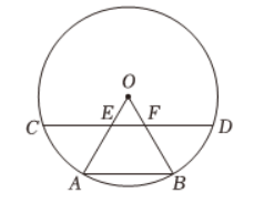 如图,在 $\odot O$ 中,$A B$ 和 $C D$ 是弦,半径 $O A 、 O B$ 分别交 $C D$ 于点 $E 、 F$ ,且 $C E=D F$ .