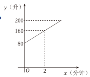 某品牌储水机的容量是 200 升,当加水加满时,储水机会自动停止加水,已知加冷水量 $y$(升)和时间 $x$(分钟)的图象如图所示,加水过程中,水的温度 $t$(摄氏度)和 $x$(分钟)的关系:$t=\frac{20 x+100}{x+2}$ .