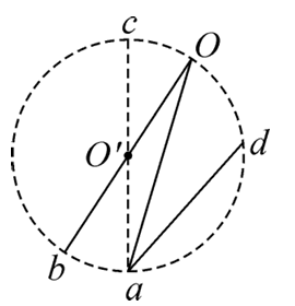 如图所示,$O a 、 O b$ 和 $a d$ 是坚直平面内三根固定的光滑细杆,$O$ 、 $a 、 b 、 c$ 、 $d$ 位于同一圆周上,$c$ 为圆周的最高点,$a$ 为最低点,$O^{\prime}$ 为圆心。每根杆上都套着一个小滑环(未画出),两个滑环从 $O$ 点无初速释放,一个滑环从 $d$ 点无初速释放,用 $t_1$ 、 $t_2 、 t_3$ 分别表示滑环沿 $O a 、 O b 、 d a$ 到达 $a 、 b$所用的时间,则下列关系正确的是