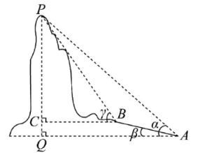 如图,在山脚 $A$ 处测得山顶 $P$ 的仰角 $\alpha$ 为 $45^{\circ}$ ,沿倾斜角 $\beta$ 为 $15^{\circ}$ 的斜坡向上走 100 米到达 $B$ 处,在 $B$ 处测得山顶 $P$ 的仰角 $\gamma$ 为 $60^{\circ}$ ,则山的高度 $P Q$ 为()附: $\sin 15^{\circ}=\frac{\sqrt{6}-\sqrt{2}}{4}$ .