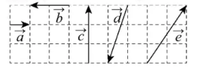已知向量 $\vec{a}, \vec{b}, \vec{c}, \vec{d}, \vec{e}$ 如图所示,图中小方格的边长为 1 ,则