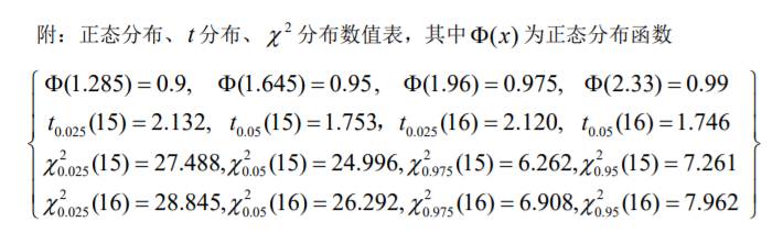设某机器生产的零件长度 (单位: cm ) $X \sim N\left(\mu, \sigma^2\right)$, 今抽取容量为 16 的样本, 测得样本平均值 $\bar{x}=10$,样本方差 $s^2=0.16$.