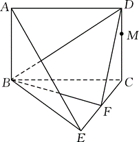 如图所示,平面 $ABCD \perp$ 平面 BCE ,四边形 ABCD 为矩形, $BC = CE$ ,点 F 为 CE 的中点.