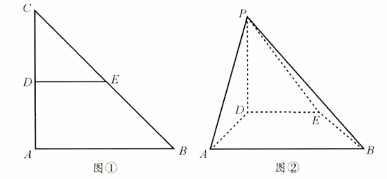如图(1), 在等腰直角三角形 $A B C$ 中, $\angle A=90^{\circ}, A B=2, D, E$ 分别是 $A C, B C$ 上的点, 且 满足 $D E / / A B$. 将 $\triangle C D E$ 沿 $D E$ 折起, 得到如图(2)所示的四棱雉 $P-A B E D$.