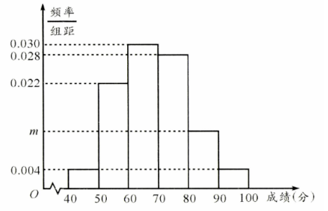 成都作为常住人口超 2000 万的超大城市, 注册青年志愿者人数超 114 万, 志愿服务时长超 268 万小时. 2022 年 6 月, 成都 22 个市级部门联合启动了 2022 年成都市青年志愿服务项目大赛, 项目大赛申报期间, 共收到 331 个主体的 416 个志愿服务项目, 覆盖文明实践、社区治理与邻里 守望、环境保护等 13 大领域. 已知某领域共有 50 支志愿队伍申报, 主管部门组织专家对志愿者 申报队伍进行评审打分, 并将专家评分(单位: 分) 分成 6 组: $[40,50),[50,60), \cdots,[90,100]$, 得 到如图所示的频率分布直方图.