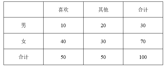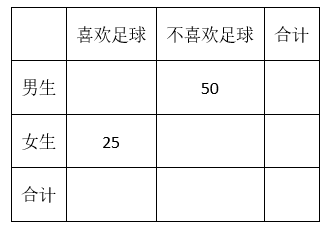 某校组建了足球社团.为了解学生喜欢足球是否与性别有关,随机抽取了男、女同学各100名进行调查,统计得出的数据如下表:
