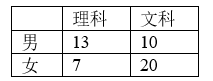 为了判断高中三年级学生是否选修文科与性别的关系,现随机抽取 50 名学生,得到如下 $2 \times 2$ 列联表: