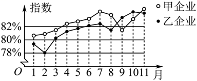 某市经济开发区的经济发展取得阶段性成效,为深入了解该区的发展情况,现对该区两企业进行连续 11 个月的调研,得到两企业这 11 个月利润增长指数折线图(如下图所示),下列说法正确的是( )