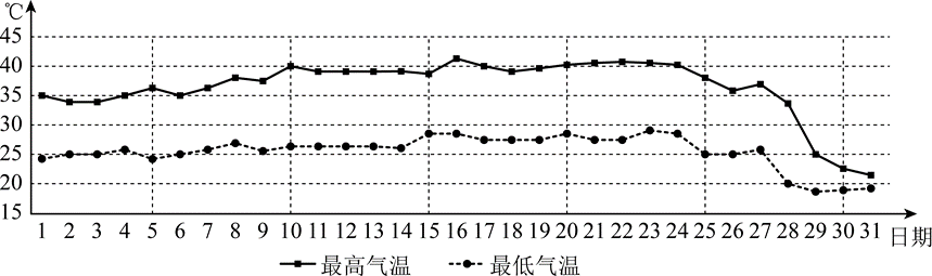 某地区 年夏天迎来近 年来罕见的高温极端天气,当地气象部门统计了八月份每天的最高气温和最低气温,得到如下图表