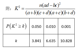 参考公式:$\quad \chi^2=\frac{n(a d-b c)^2}{(a+b)(c+d)(a+c)(b+d)}$ ,其中 $n=a+b+c+d$ .