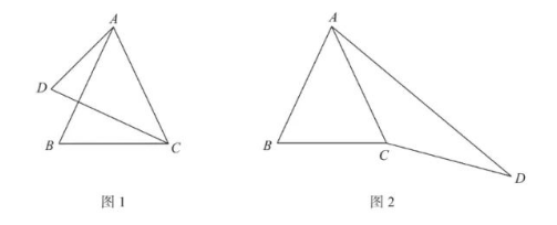 (2) 如图 2, 若 $\angle A C D$ 与 $\angle B A C$ 互补, 过点 $C$ 作 $C H \perp A D$ 于点 $H$, 求证: $C H=\frac{1}{2} B C$;