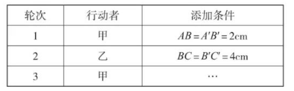 (1) 若第 3 轮甲添加 $A C=A^{\prime} C^{\prime}=5 \mathrm{~cm}$, 则乙获胜;