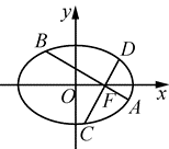 如图,在平面直角坐标系 $x O y$ 中,椭圆 $\frac{x^2}{a^2}+\frac{y^2}{b^2}=1(a>b>0)$ 的离心率为 $\frac{1}{2}$ ,过椭圆右焦点 $F$ 作两条互相垂直的弦 $A B$ 与 $C D$ .当直线 $A B$ 的斜率为 0 时,$A B=4$ .