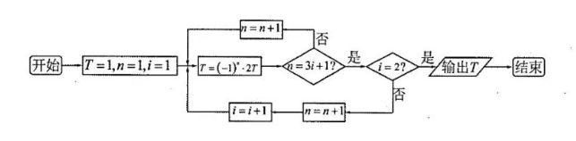 执行如下图所示的程序框图, 则输出的 $T$ 为