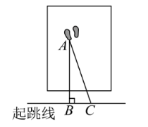 在跳远比赛中,某同学从点 $C$ 处起跳后,在沙池留下的脚印如图所示,测量线段 $A B$ 的长度作为他此次跳远成绩(最近着地点到起跳线的最短距离),依据的数学原理是