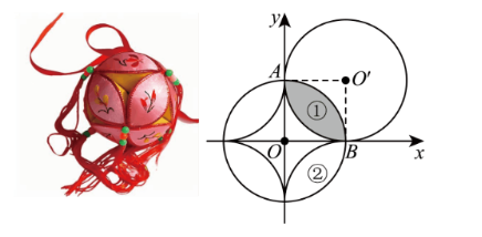 绣球是广西民族文化的特色载体.如图,设计某种绣球叶瓣时,可以先在图纸上建立平面直角坐标系,再分别以原点 $O, O^{\prime}(5,5)$ 为圆心、以 5 为半径作圆,两圆相交于 $A, B$ 两点,其公共部分构成叶瓣 ① (阴影部分),同理得到叶瓣 ② .