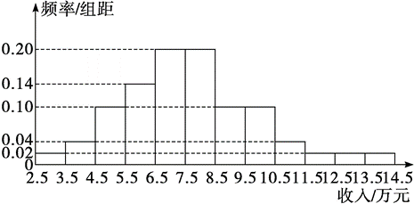 为了解某地农村经济情况,对该地农户家庭年收入进行抽样调查,将农户家庭年收入的调查数据整理得到如下频率分布直方图: