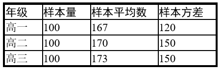 某校采用分层随机抽样的方法采集了高一、高二、高三年级学生的身高情况,部分调查数据如下: