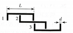 有一款推拉门, 其三扇门板俯视如图所示, 每扇门的宽度均为 $L=1.00 \mathrm{~m}$, 质量均为 $m=20 \mathrm{~kg}$, 边缘凸起部位的宽度均为 $d=0.05 \mathrm{~m}$ 。门完全关闭时, 1 号门板的左侧以及 3 号 门板的右侧分别与两侧的门框接触时, 相邻门板的凸起部位也恰好接触。测试时, 将三扇 门板均推至最左端, 然后用恒力 $F$ 水平向右推 3 号门板, 每次都经过相同的位移 $s=0.20 \mathrm{~m}$ 后撤去 $F$, 观察三扇门的运动情况。发现当恒力为 $8.5 \mathrm{~N}$ 时, 3 号门板恰好能运动到其左侧 凸起与 2 号门板右侧的凸起接触处。设每扇门与轨道间的动摩擦因数均相同, 门板凸起部位间的碰撞及门板与门框的碰撞均为完全非弹性碰撞 (不黏 连)。不考㤅空气阻力, 取 $g=10 \mathrm{~m} / \mathrm{s}^2$ 。