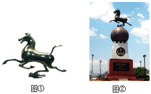 图(1)是甘肃省博物馆的镇馆之宝 - - 铜奔马, 又称 “马踏飞燕”, 于 1969 年 10 月出土于武 威市的雷台汉墓, 1983 年 10 月被国家旅游局确定为中国旅游标志. 在很多旅游城市的广 场上都有 “马踏飞燕” 雕塑. 某学习小组把测量本城市广场的 “马踏飞燕” 雕塑 (图(2)) 最高点离地面的高度作为一次课题活动, 同学们制定了测量方案, 并完成了实地测量, 测得结果如下表: