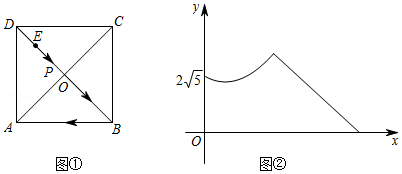 如图(1), 正方形 $A B C D$ 中, $A C, B D$ 相交于点 $O, E$ 是 $O D$ 的中点. 动点 $P$ 从点 $E$ 出发, 沿着 $E \rightarrow O \rightarrow B \rightarrow A$ 的路径以每秒 1 个单位长度的速度运动到点 $A$, 在此过程中线段 $A P$ 的 长度 $y$ 随着运动时间 $x$ 的函数关系如图(2)所示, 则 $A B$ 的长为