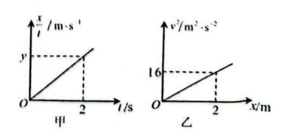 一个物块在光滑的水平面上受到水平恒力 $F$ 的作用, 从静止开始做匀加速直线运动, 计 时开始的 $\frac{x}{t}-t$ 图像如甲所示, $v^2-x$ 图像如图乙所示,据图像的特点与信息分析,下列说 法正确的是