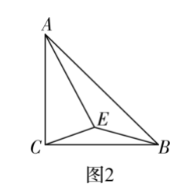(2) 如图2,已知,在 $\triangle A B C$ 中, $A C=B C , \angle A C B=90^{\circ} . \triangle A B C$ 内一动点 $E$ 到 $A 、 B 、 C$ 三点的 距离之和的最小值为 2 ,求 $A C$ 的长.