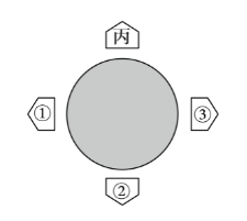一张圆桌旁设有 4 个座位,丙先坐在了如图所示的座位上,甲、乙 2 人等可能地坐到(1)、(2)、(3)中的 2 个 座位上.