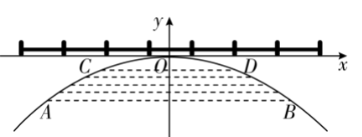 如图,有一座抛物线型拱桥,在正常水位时水面宽 $A B=20 \mathrm{~m}$ ,当水位上升 $3 \mathrm{~m}$ 时,水面宽 $C D=10 \mathrm{~m}$